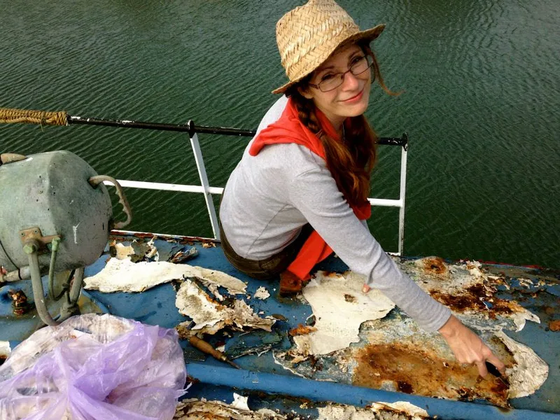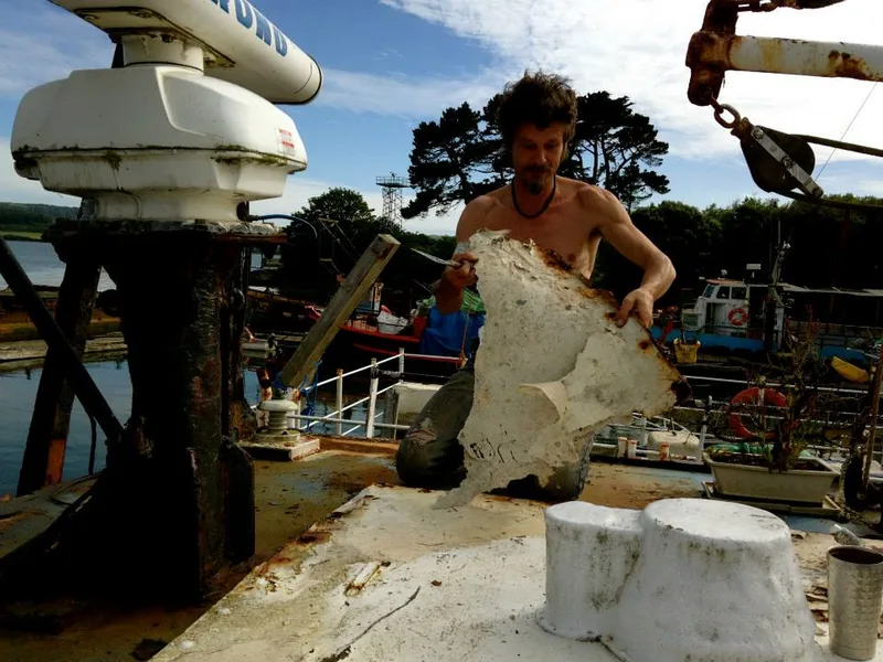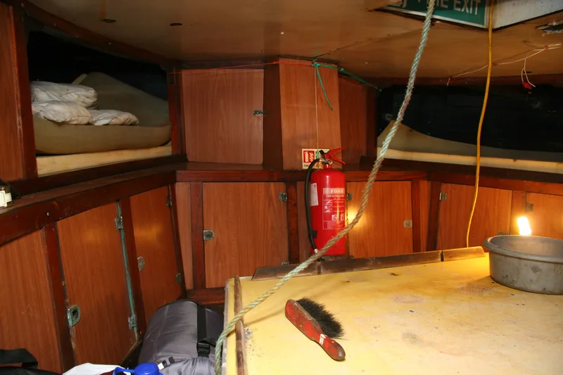 It was a rough time in every way imaginable but day by day I set to work, distracting myself from my predicament by focusing on the task in hand. I worked mostly below decks, in the old fish-hold where the huge oak beams curled around me like the ribs of a whale, first clearing out all the debris from Albacore’s life as a trawler, removing the wooden partitions and cleaning, cleaning, cleaning … It stank, not surprisingly, of rotting fish and was unimaginably filthy but it had a potential to become something beautiful, I was sure …