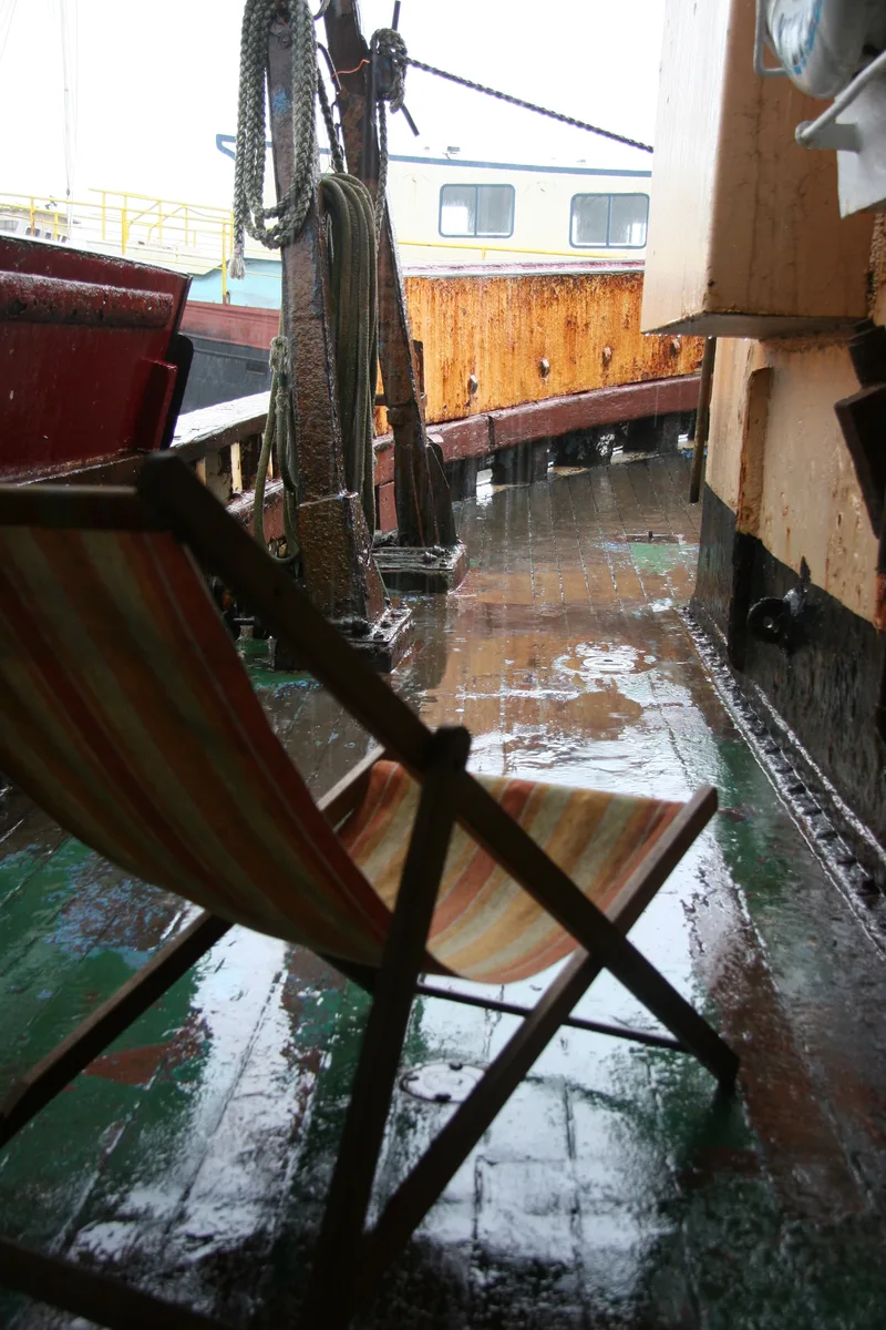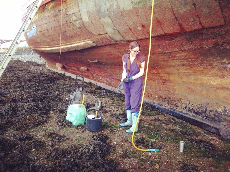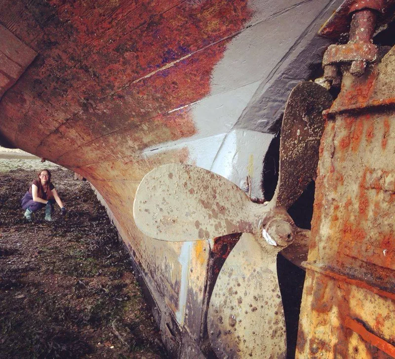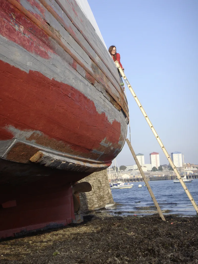 We were tied up to the wall of the Ballast Pond where the difference in high and low tide was as much as 3 metres. This meant that we were constantly having to secure the boat between it floating and it sitting on the beach where she had to lean, all 50 tonnes of her, terrifyingly, against the wall. There is nothing more sobering, whilst in the middle of a ‘fun’ adventure, than having to crawl in to the pitch dark fetid space between sea wall and boat to scrape barnacles off the hull of a boat, knowing that 50 tonnes of metal and ancient oak is leaning right over you. Just me, a few acres of slimy, slippery sea debris, and the dead seagull … I can still taste the smell in my nasal passages!