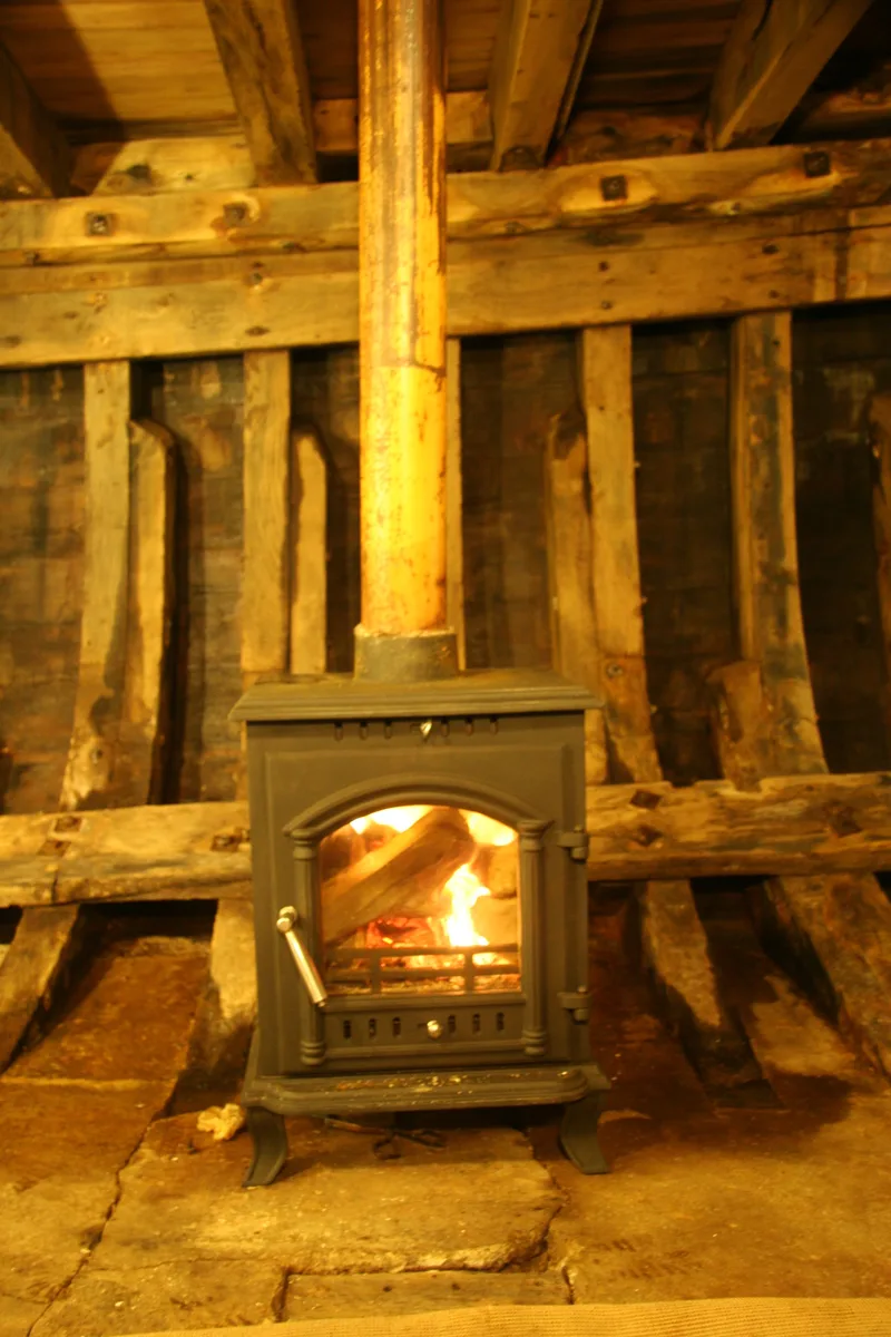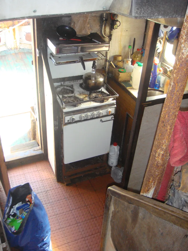 By the following winter, Albacore was watertight and sealed in, Tim had a new and much improved ‘bedroom’ in the old fish hold, and most importantly of all, he had a log burner.