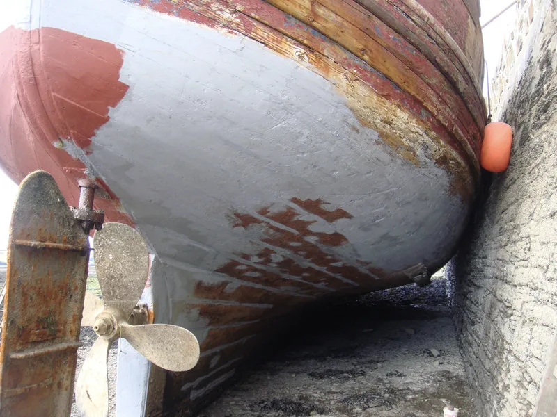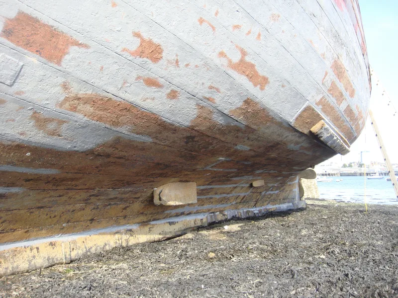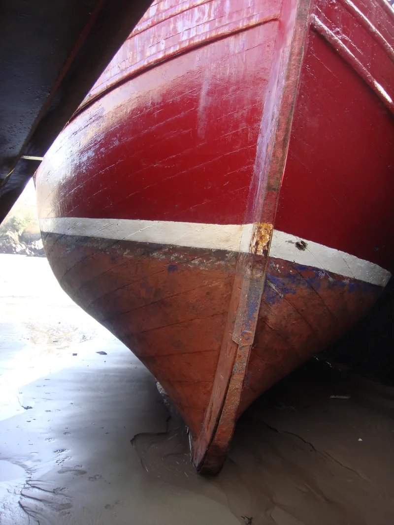It was here, outside of the comforting safety of the boatyard, exposed to the tides and the elements, that we would spend the next couple of weeks working frantically on every low tide to repair and seal the massive hull.