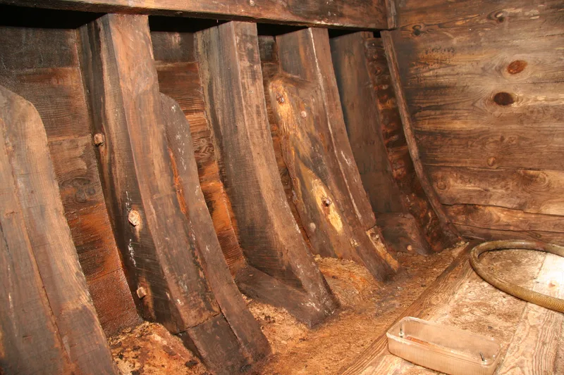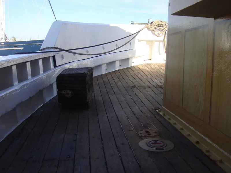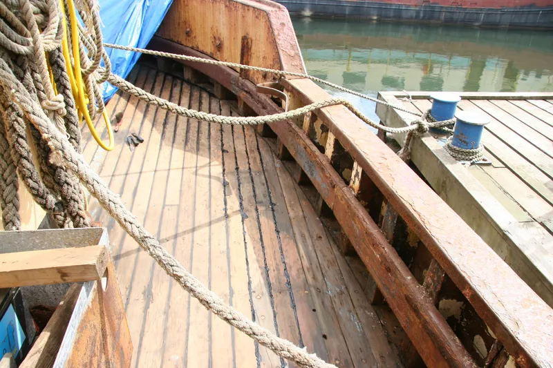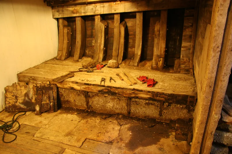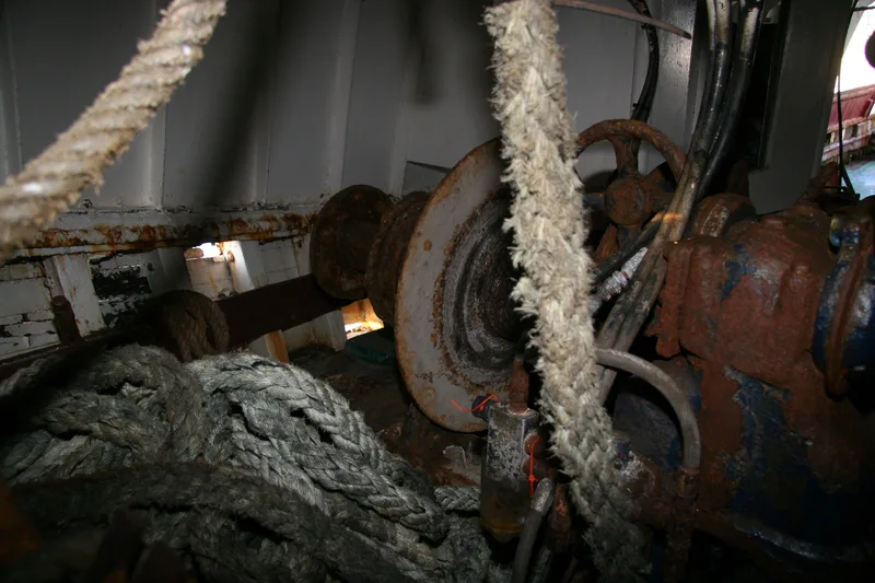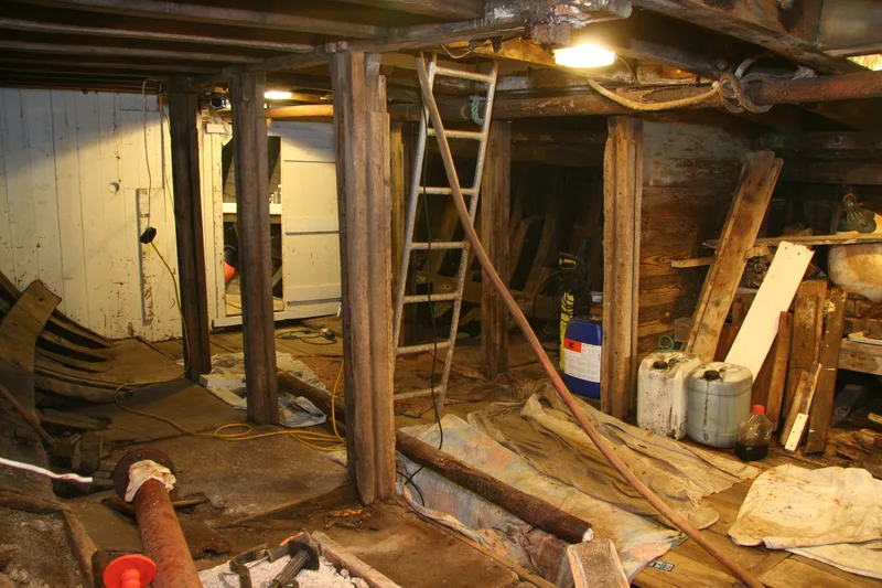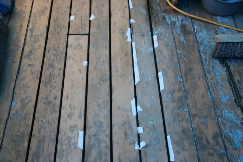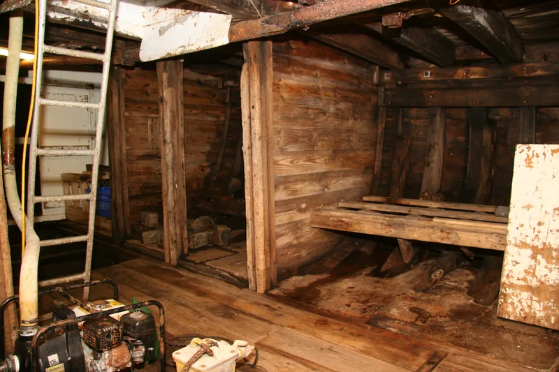 The old fish hold, in particular, underwent a lot of work: After the cleaning and the sanding, Tim removed the old metal pipes, emptying them of oil and sealing off the ends. He then treated and waxed all of the wood using a beeswax which he made up himself from the raw ingredients. It smelled amazing after that! He then spent most of the summer working on the upper decks which had a habit of leaking water in to the old bunk room below, an unfortunate fact which he had been forced to endure from one of the bunk beds all through that previous winter! He used traditional methods and materials to caulk the seams with oakum and tar, the smell of which can still transport me back to that summer in an instant.
