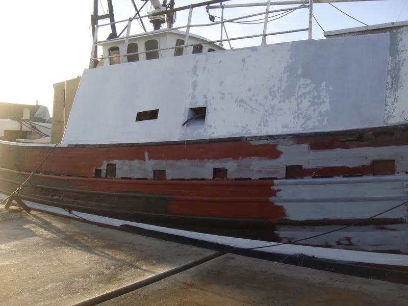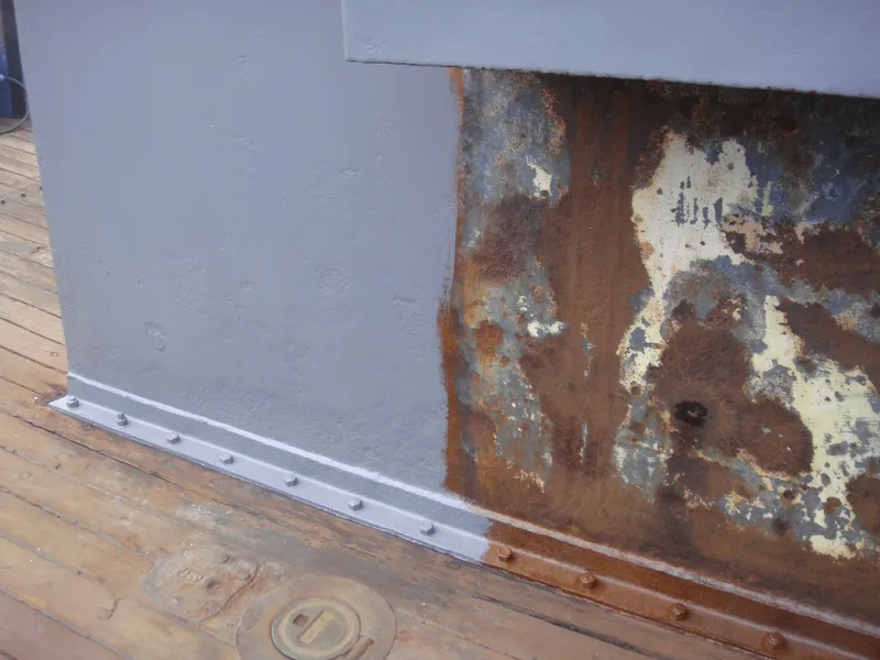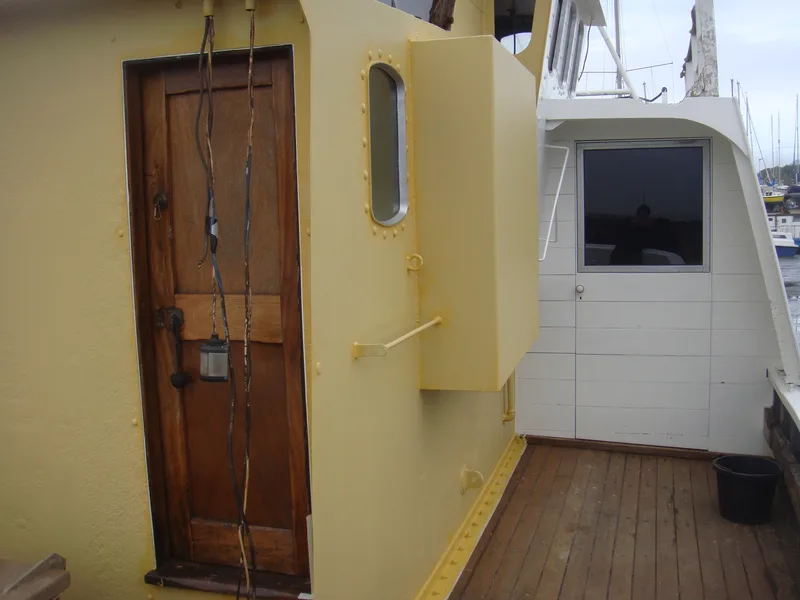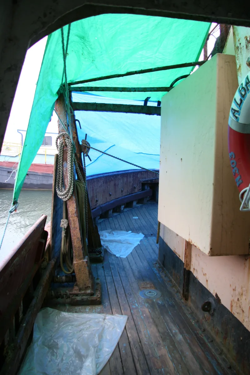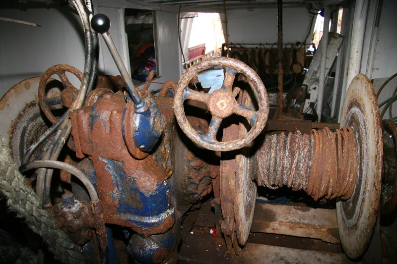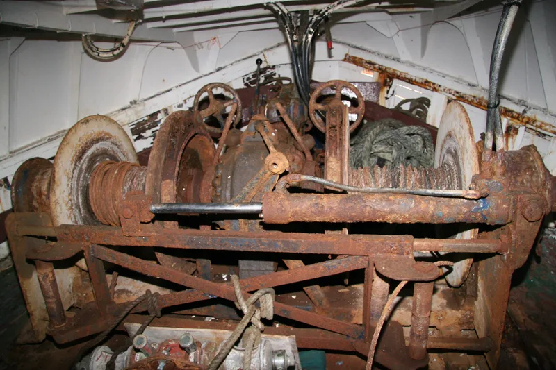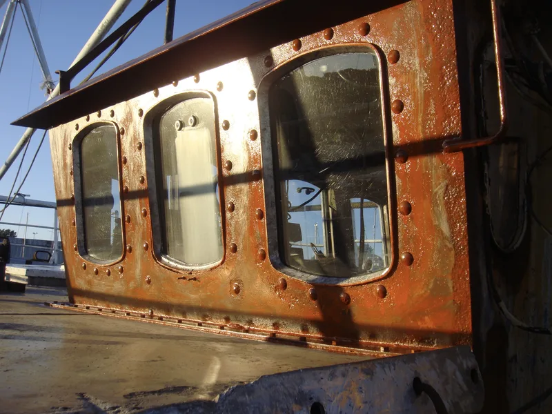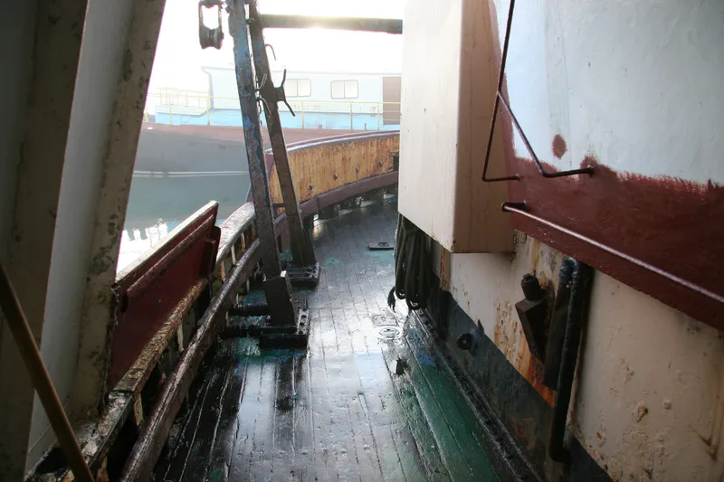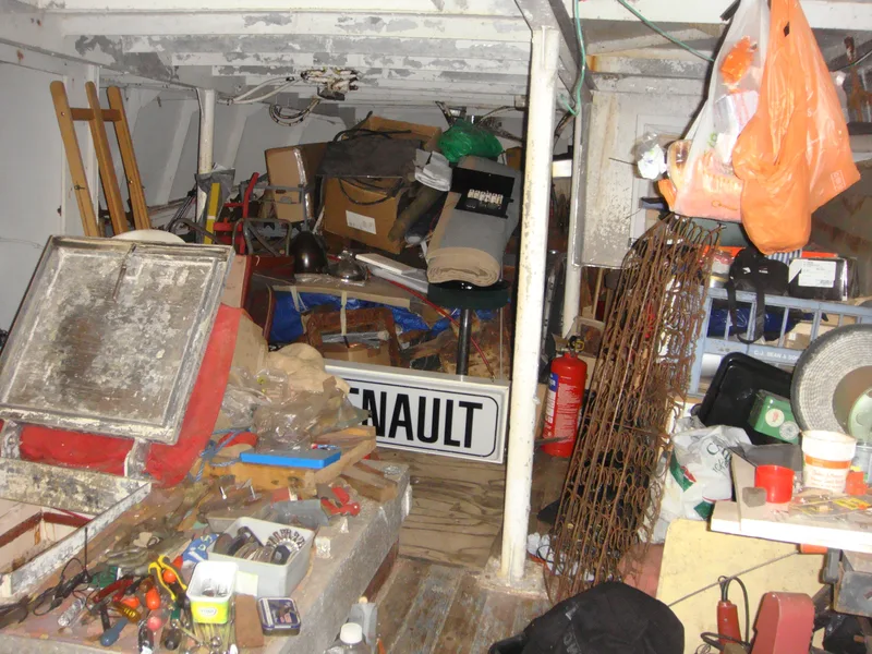 I had already stripped back the old layers of paint and rust from the wheelhouse so I started by priming that. I also started stripping, repairing and priming the one side of the boat I could safely get to. I removed more of the old iron gubbins from the decks which were a hangover from Albacore’s trawler days and I put most of my personal belongings in to a storage container to - (literally!) - clear the decks so I could begin work on the interior.