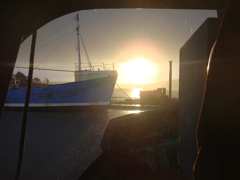 Sunrises aside, I think I spent most of that winter in the weird, brown twilight of concrete dust and damp wood as I cleared out and scrubbed the bilges and attempted to sand away the years of whatever-the-heck-it-was that coated literally everything in that former fish hold.