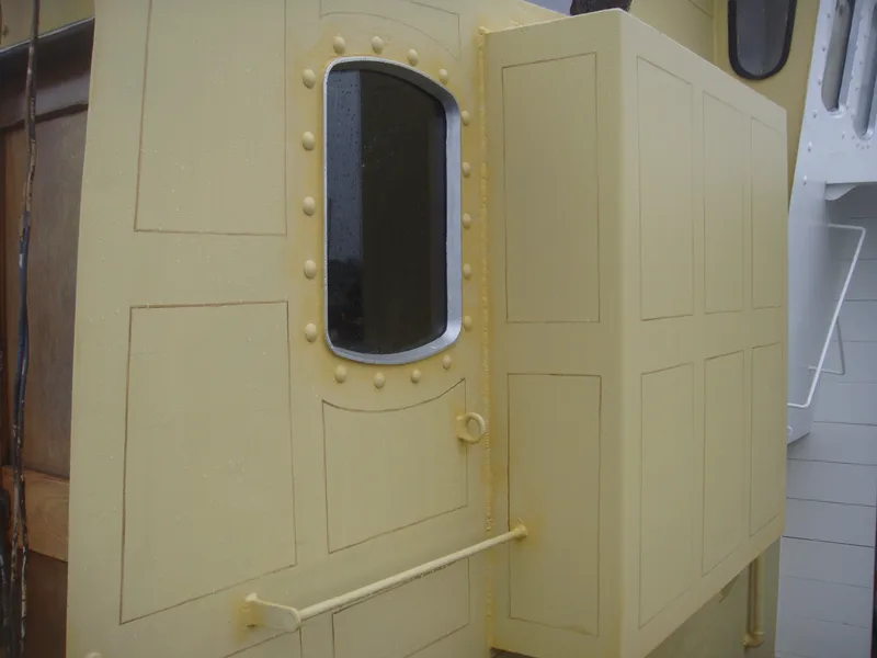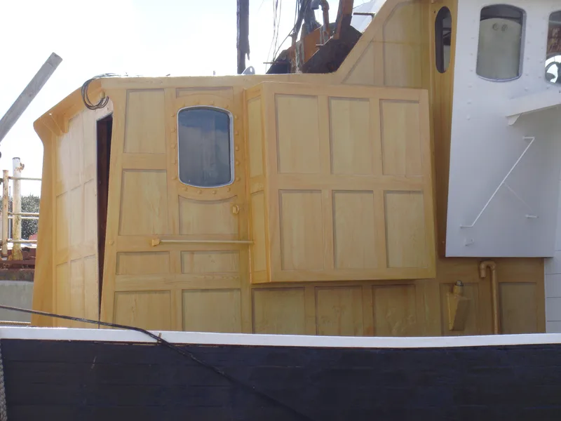 Transforming that rusty, crusty old wheelhouse with its layers and layers of old paint back in to what would have been its original and traditional wood grain paint effect was satisfying work. I had uncovered the remains of the old wood grain paint and it was evident that this technique had been used many times in the past. I was even able to trace the placement of the old lines, and by taking it back to the bare metal to start anew I was able to do a really nice job.