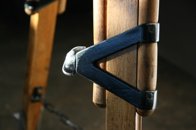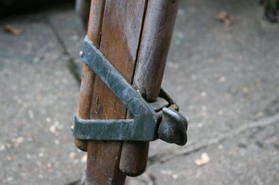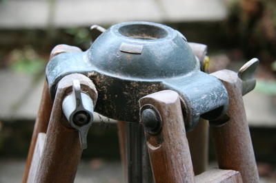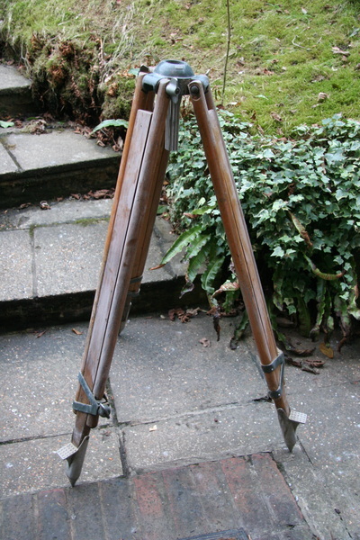 The surveyor's tripod needed extensive repairs to the wood. I also stripped the old paint from the aluminium fittings, then repainted them black and antiqued it back down for a nice finish. I also added a chain to the legs at the bottom to stop the feet from slipping if it needs to stand on a smooth floor.