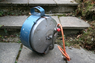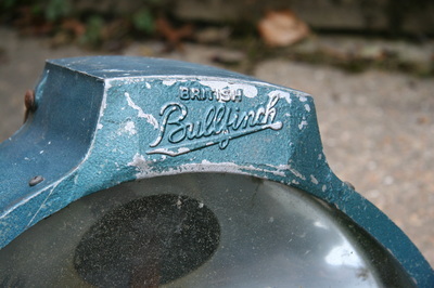 This fantastic British Bullfinch Lamp, dating from the 1950s, would originally have been powered by propane gas and when I originally sourced the lamp it still had the old gas pipes fitted to it. These I removed along with the old gas mantle and, taking the whole thing apart, I stripped off the old paint and cleaned, polished and restored it to its former glory, including the lettering which I painted in traditional enamel. The back, which is made of pressed steel, I simply restored to keep its age rather than re-paint it.