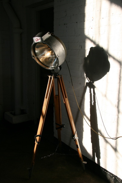 Upcycled Industrial Floodlight on Surveyor's Tripod