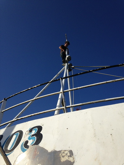 In September last year, we took her out of the water and treated her to a complete de-barnacling(!), a rigorous clean, caulking, repair and anti-foul. I could swear that the smell of old seaweed and dead seagull still lingers in my abused nostrils from that memorable fortnight, although I have to say that I loved every crazy moment of it. Check out the film I took to see some of this in progress ... (Apologies for some of the sound quality, the wind was relentless!) ...
