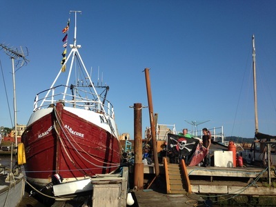 Those of you who have followed us and supported us on this journey, from the very early days with Tim in Kilkeel, and his (somewhat perilous) journey across the Irish Sea (romantically retold by me in the story 'Salt in The Blood'), through the years of life onboard and the ups and downs of restoration work slowly and meticulously carried out, we thank you all and would like to assure you that although this is the end of one adventure, it is also the gateway into another. As Tim would like you all to know: 'I'll always be a pirate. I'm a pirate at 3 in the morning on a Saturday and I'm a pirate at half past ten on a Tuesday morning' ... (To be fair, he may have been a little tipsy on the rum when he said that!) Our decision to sell has not been easy, but after 5 years (7 for Tim) the time has come for us to embark on new projects. No plan is set in stone, but we do hope to grow and expand our upcycling venture at Old Rope Salvage: One of the things we have recently started working on is the possibility of video blogs. We also want to explore some new ideas for sustainable living and working, perhaps a campervan for extended trips ... (Tim?) ... There is much to do and much to think about as we look to the future but most importantly, the first thing will be to have a wedding and a much needed holiday (not necessarily in that order!) so WATCH THIS SPACE!So, the time has come for us to part ways with our beloved 'Albacore', now restored to her former name 'May Queen 1V'. She will always be 'Albacore' to us, but during the restoration we uncovered, under the many layers of peeling paint, the beautifully carved letters of the old name and so we decided to reinstate 'May Queen 1V', an old/new name for a new life.