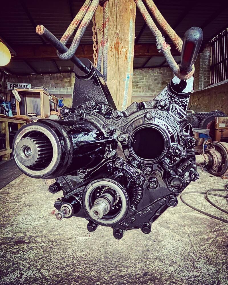 We began with some easy (ish) wins, unbolting and removing one thing at a time, bagging, labelling and photographing as we went along. We used ropes and pulleys and trolleys to lower and remove some of the heavier parts such as the transfer case and the gearbox, but when it finally came down to lifting the massive engine, we had to rig up our block and tackle to the iron beams overhead and use our ingenuity as much as our manpower. Even so, we’re pretty sure it was Engine Lift Day which gave Tim his double matching hernias!