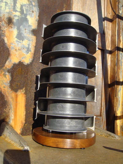One of the pieces I picked out of his bin was this aluminium inlet manifold from a V8 engine that was being treated to a supercharger. Designed to vary the length of the inlet tract changing the engine's torque curve (sorry, getting technical) I thought it looked like an interesting piece. I've always tried to look at things as purely architectural, noticing the design and the shape over and beyond a thing's intended purpose. It is this way of 'seeing' something which helps me to recognise if it is worth salvaging. With this particular piece, I felt that it was simply a beautiful architectural thing which deserved a second chance.